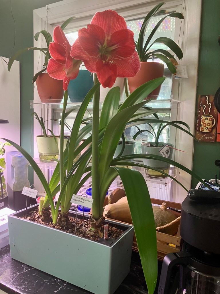 My indoor garden is a lively mix of citrus trees, clivias, houseplants, and hanging baskets tucked safely inside for the winter. More than a few AeroGarden hydroponic setups hum along in the background, supplying fresh salads during the half of the year when Ohio’s cold keeps the outdoor beds dormant. A bay tree stands guard, flanked by two dwarf Cavendish bananas, several fig starters, and a slightly gangly dragon fruit stretching toward the grow lights in the sunroom.